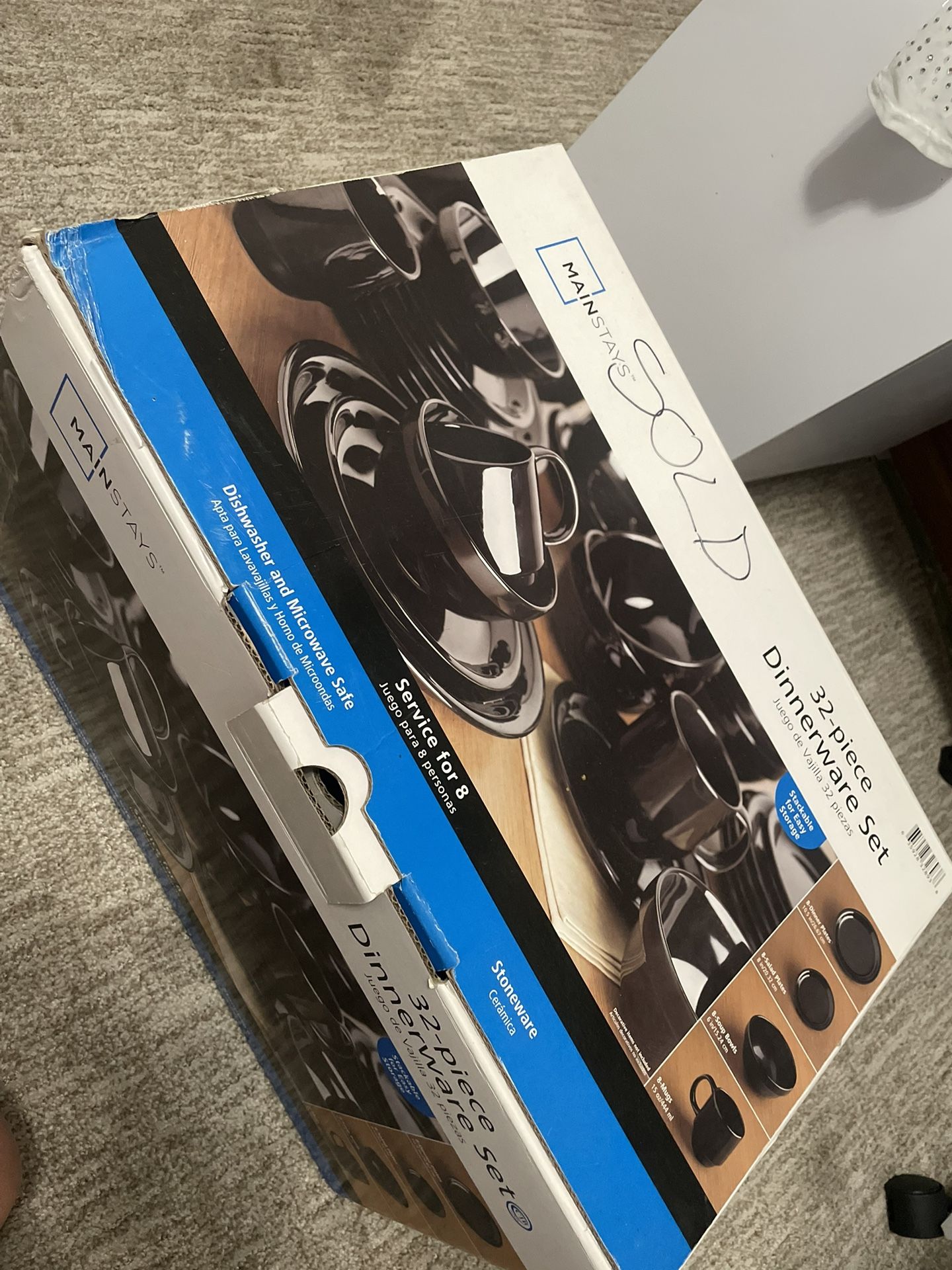 Black dish set ( 6 big plates, 6 small plates, 6 mugs, 4 bowls) good condition but some have chips nothing major