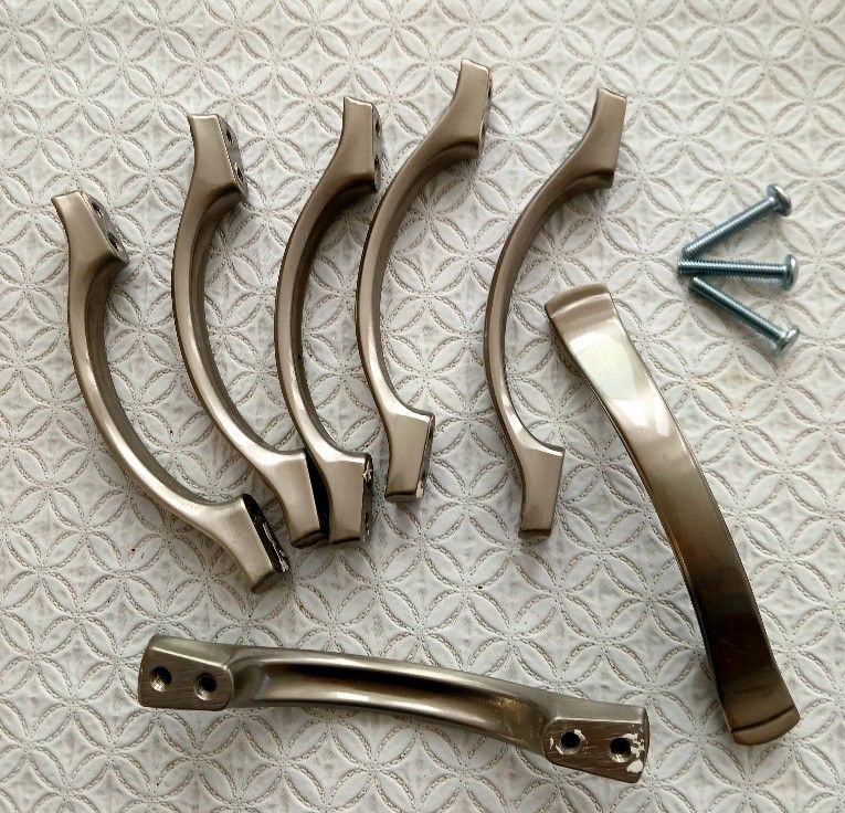 Set Of 7 Brushed Nickel Cabinet Pulls With Screws