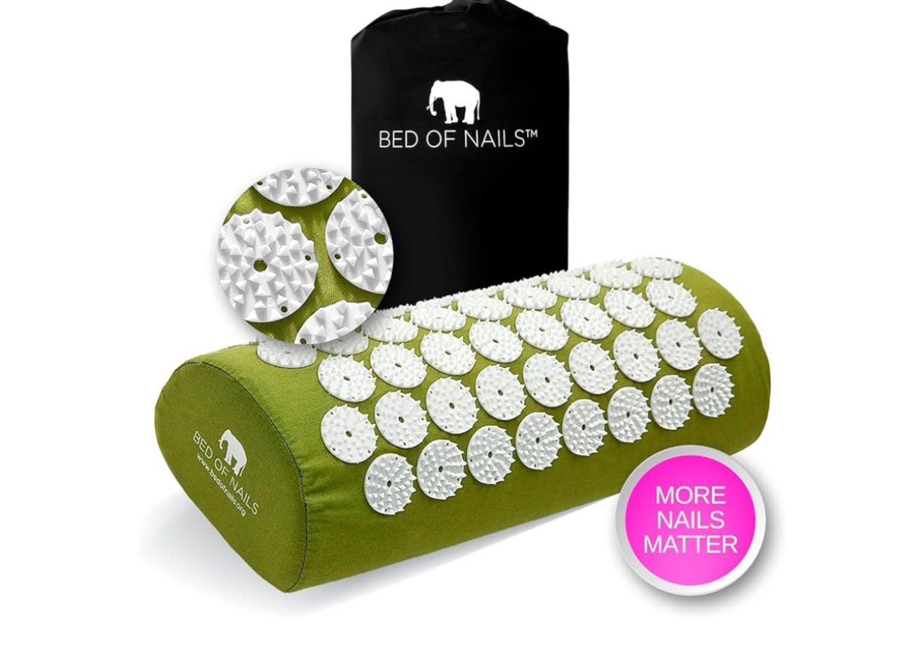 BED OF NAILS Original Comfortable Acupressure Lumbar Cushion Pillow, 2142 Acupuncture Pressure Points, Neck Pain Relief, Increased Energy, Relaxation, FSA/HSA Eligible, Drawstring Bag, 15x6x4, Green
