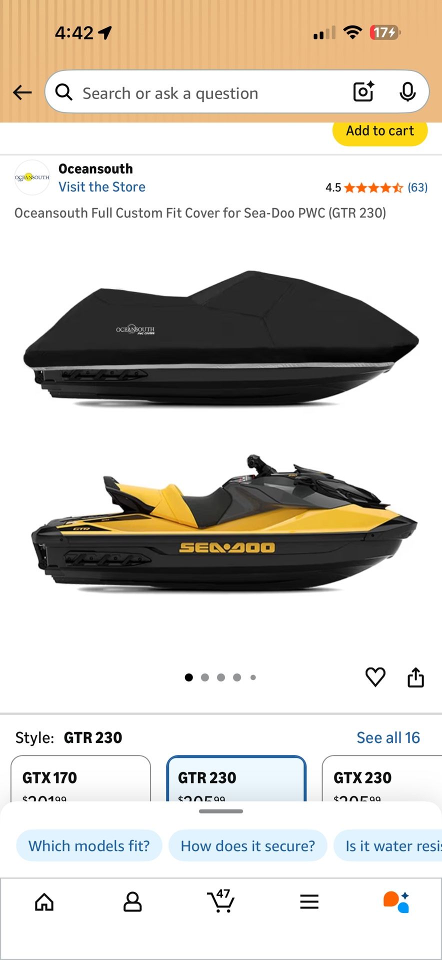 Oceansouth Full Custom Fit Cover for Sea-Doo PWC (GTR 230)