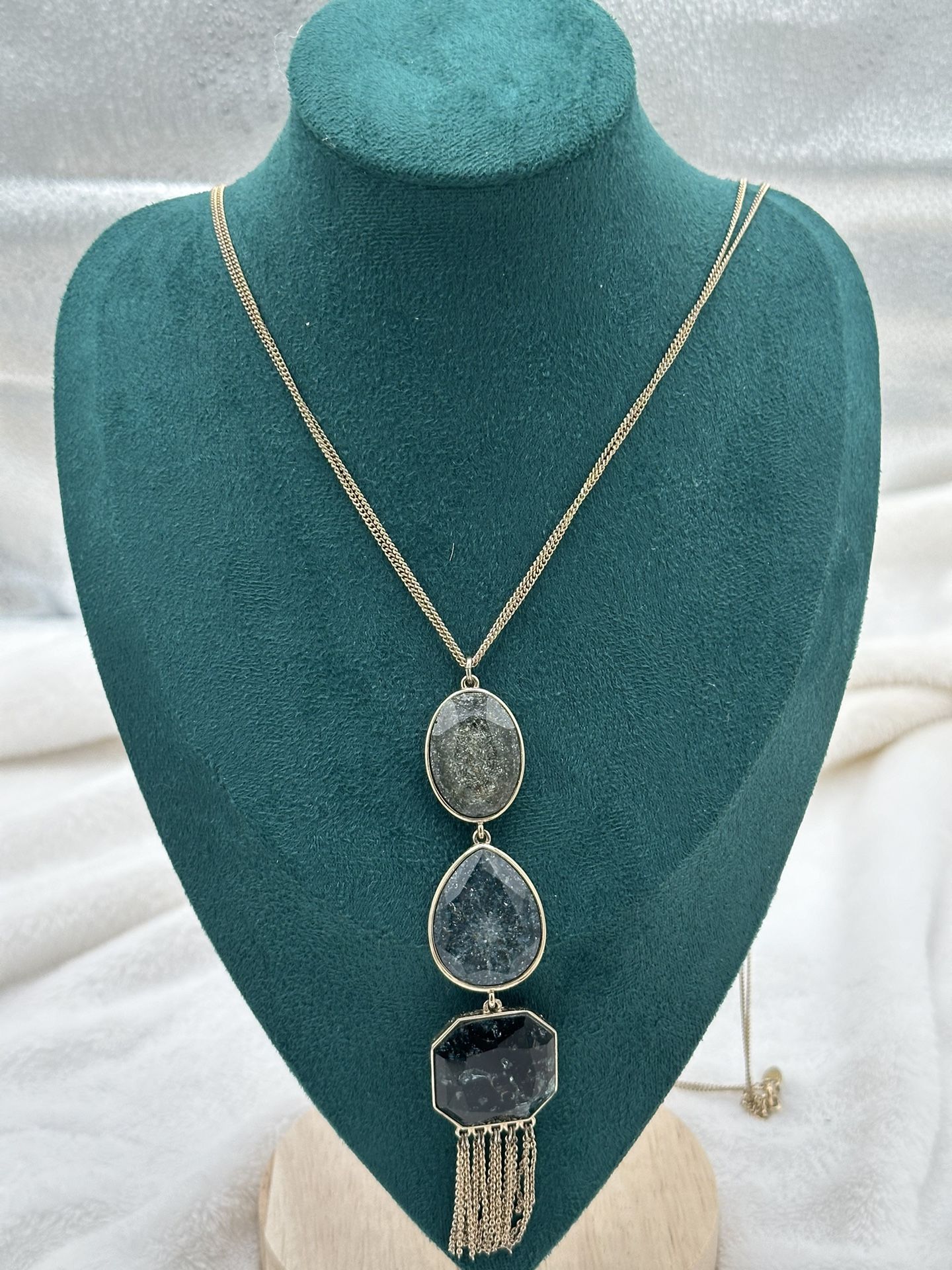 Ann Taylor Loft Long Statement Necklace 3 Medallions Two Strands 32” Long 2 1/4” Extension 5” Pendants Nice!