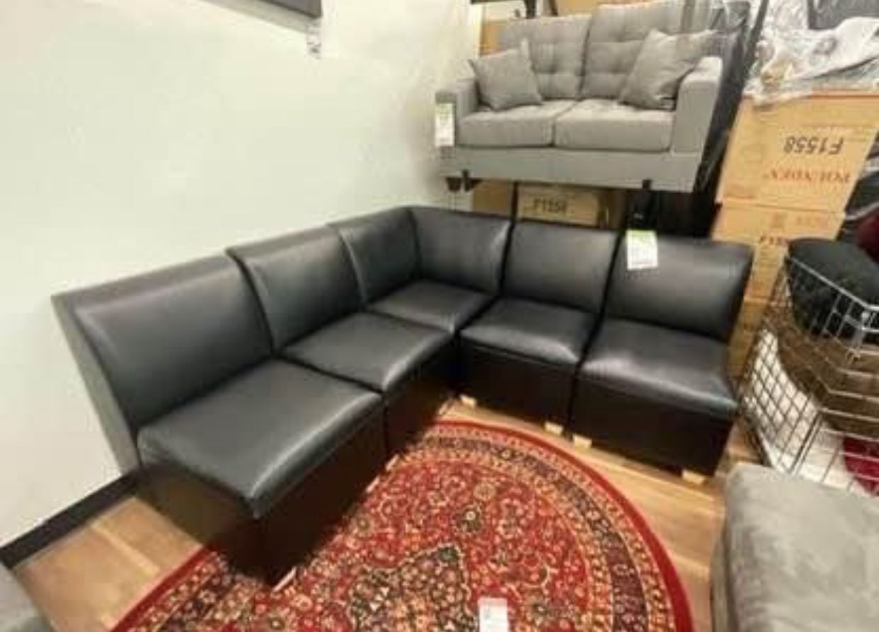 New Black Faux Leather Modular Sectional Sofa Couch - High Quality Frame