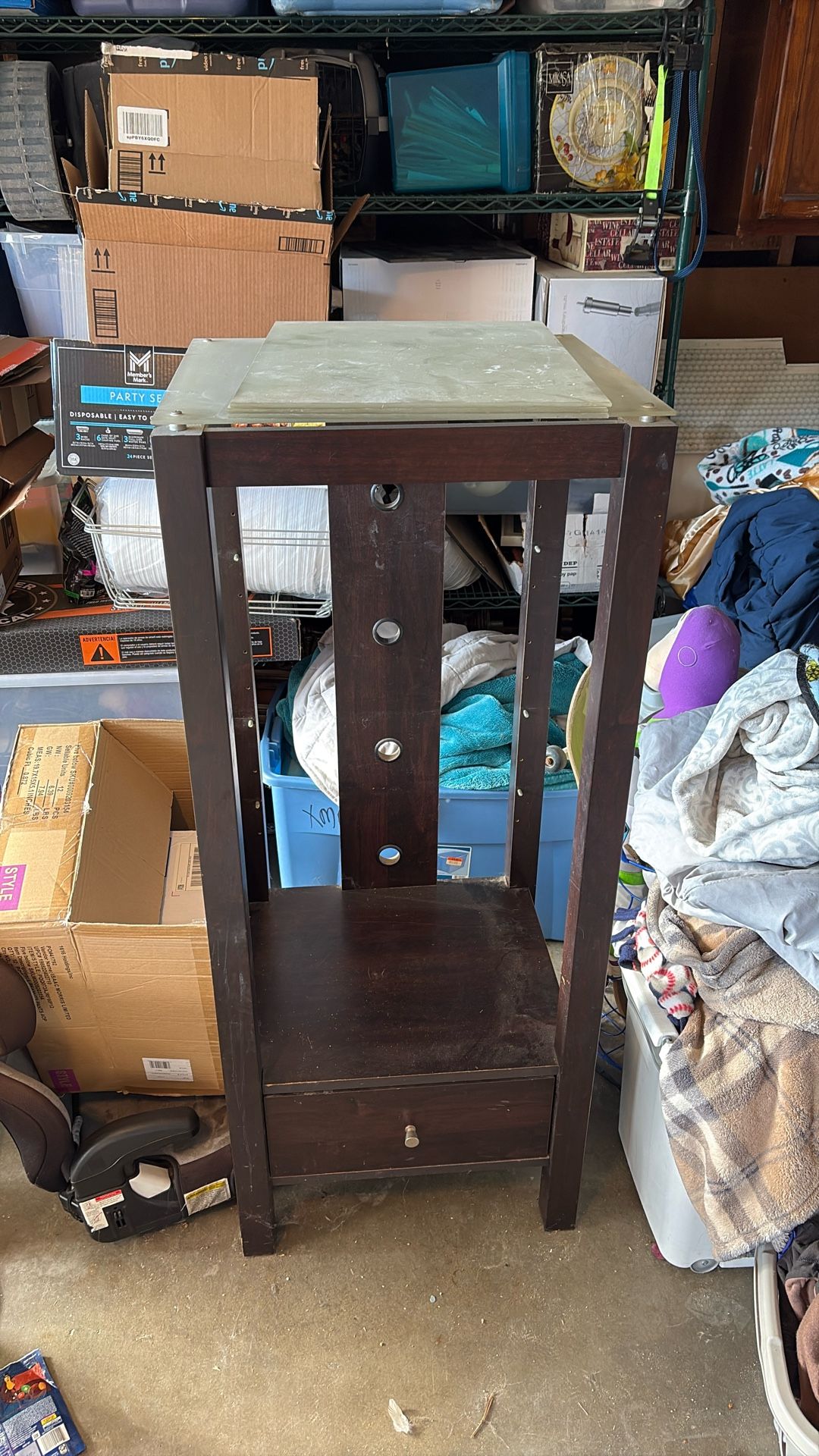 4 shelves. I used it for my entertainment center. It’s really nice just needs cleaning it’s been in my garage.