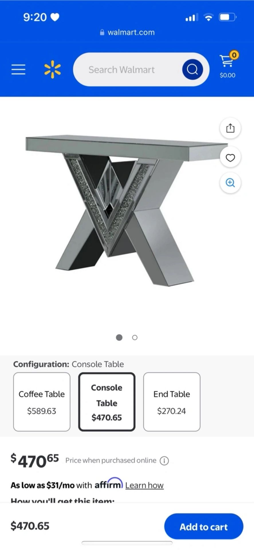 Selling table with a unique design! It features a silver finish and a geometric 'V' shaped base accented with details. It's perfect for entryways or living rooms to add a touch of modern elegance to your space. Originally bought for more than $470.65 but currently that price Length; 47 inches Width; 14 inches Height; 31 1/2