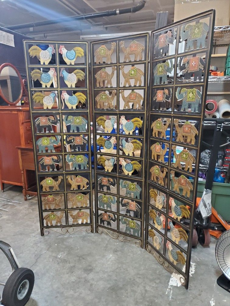 3-panel metal and painted wood Good condition We can deliver with extra charge 1" L x 21" W x 74" H