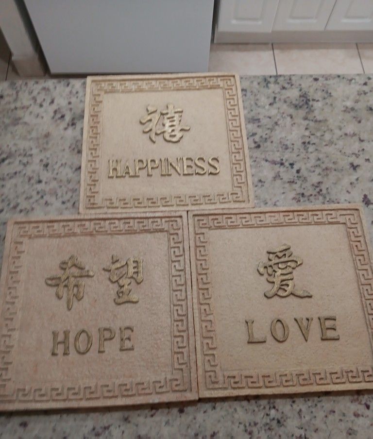 Happiness, love, and hope chinese wall art. Slightly used