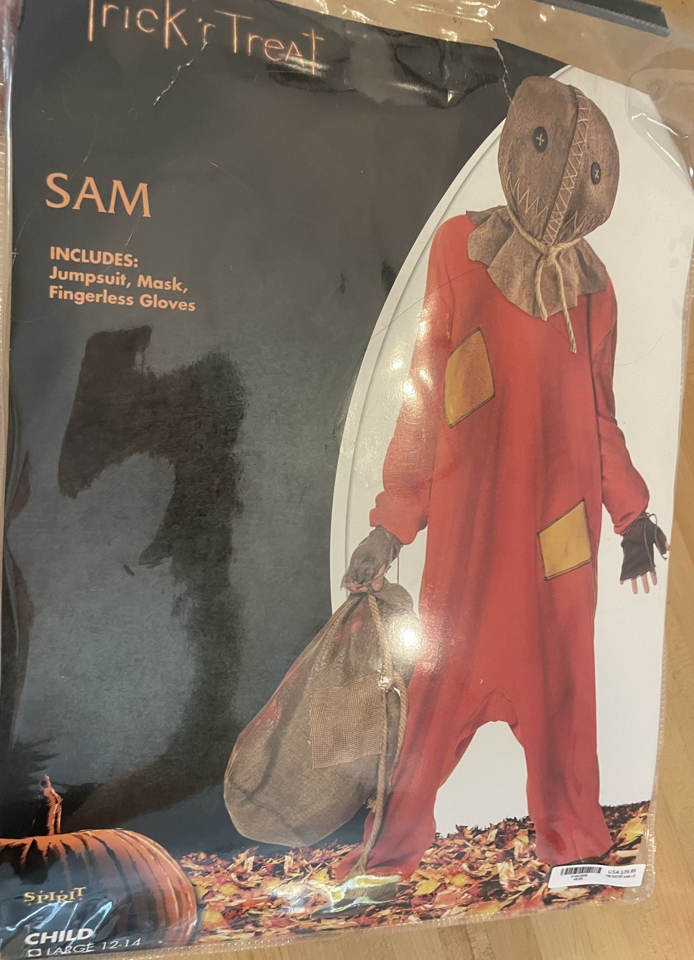 Kids Trick or Treat Sam Costume Brand new, Never Worn. Kids size large. Mask and gloves included. Bought at Spirit Halloween and it was too small for my son, but they don’t do returns! Brand new in package!
