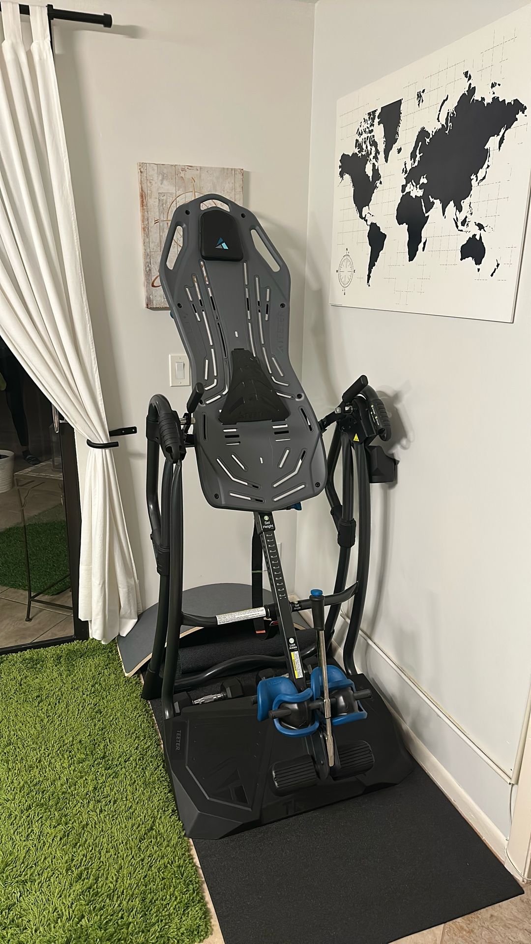 Used only a handful of times. This Teeter is in perfect condition and great for someone that has the adequate space to have it readily available for regular use. It is an amazing machine for people that have back issues, stretching and decompression. Great for a chiropractor’s office, physical therapy rehabilitation facility or personal gym.