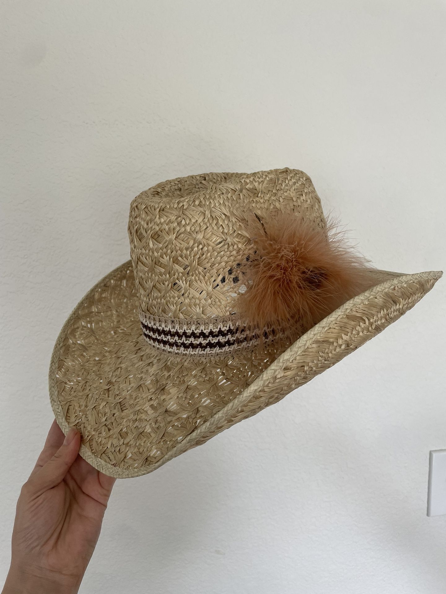 Vintage cowboy straw hat boho 1970s miller Denver CO feather festival outfit unisex