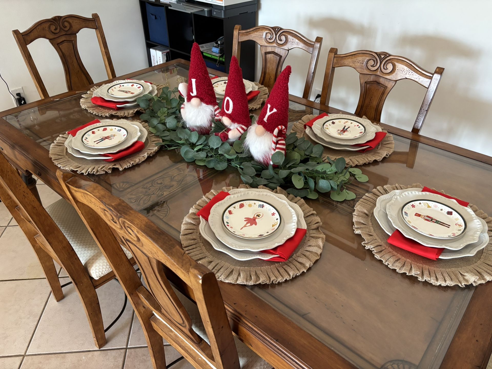 Solid wood dining table with iron detailing. Table top is carved with a protective glass. Excellent condition.