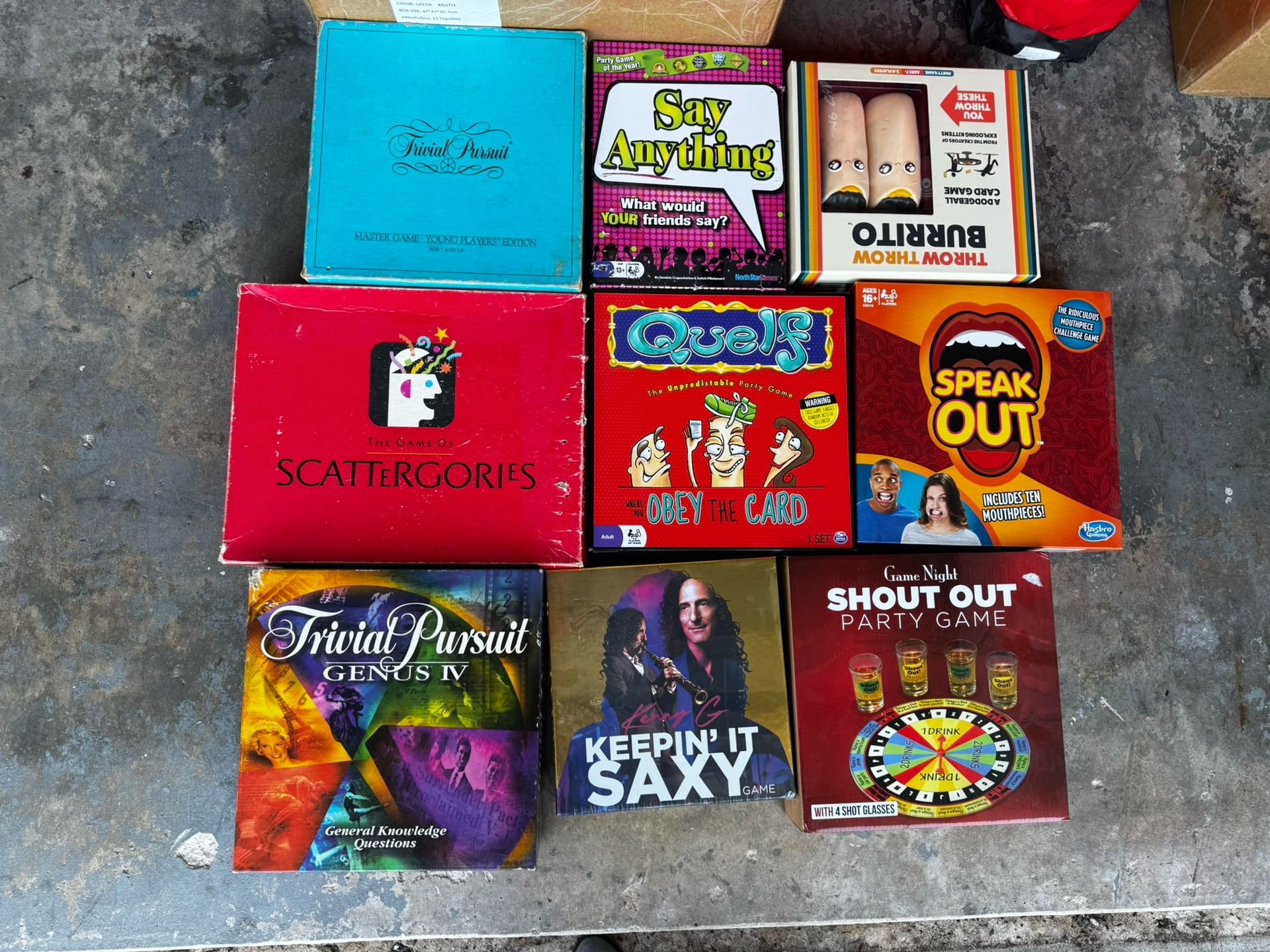 π² Board Games for Sale β Party & Classic Games π Selling a great collection of board and party games! Perfect for game nights, parties, or family fun. All games are used but in good condition. π§© Games included: - Trivial Pursuit Genius IV - Scattergories - Trivial Pursuit (Master Game / Young Players Edition) - Keepinβ It Saxy - Obey the Card - Quelf - Say Anything - Throw Throw Burrito - Shout Out Party Game - Speak Out π° Pricing: - Individual prices range from $8β$20 depending on the game - Bundle deal: take ALL for $80 (great value!) π Local pickup in Boca π¬ Message me with offers or if you want to bundle specific games Great for college students, parties, or anyone who loves game night!