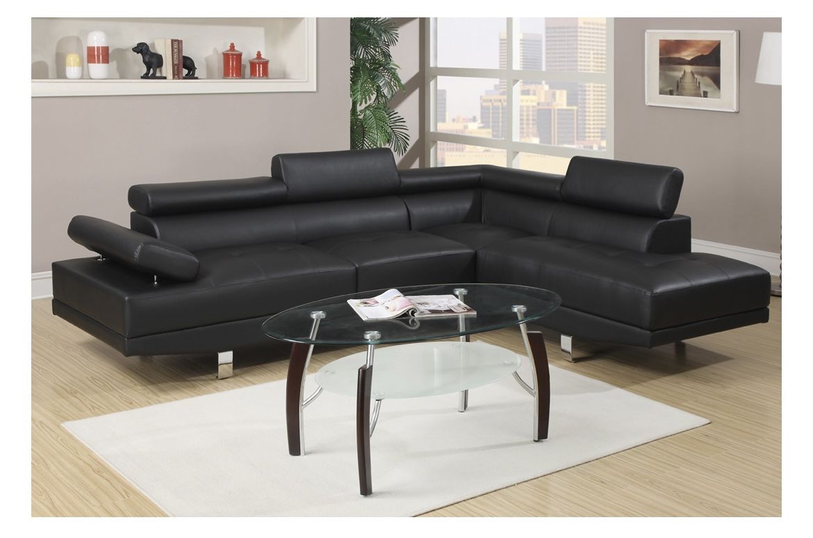 Black Faux Leather Sectional Sofa