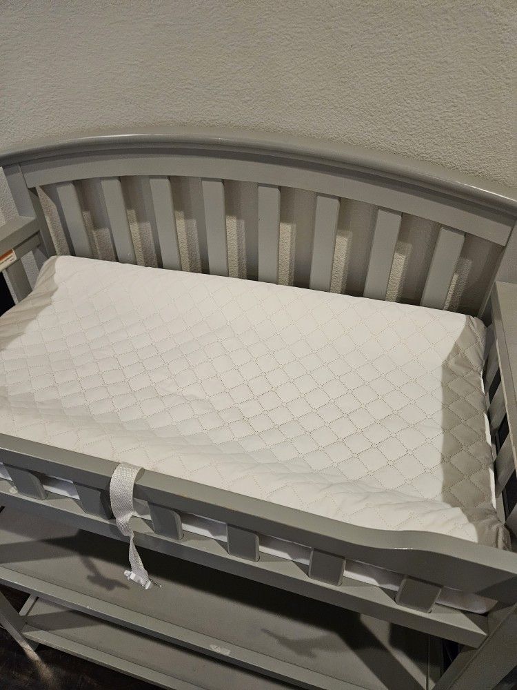 Gray Baby Changing Table in good clean condition. Has some minor scuffs as pictured but otherwise sturdy and in good condition. Comes with changing pad and covers.