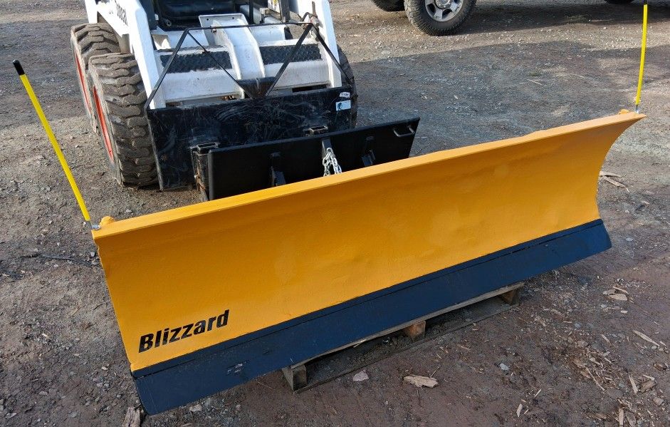 Snow is coming!! Get your plow job done faster!!This is a 7ft plow blade for skidsteer, power angle, new cuplers, fits most models, bobcat, CAT, GEL,kubota, jhon deer, case. Fully working,no cracks ,painted last summer, sold as it is,good plow overall.