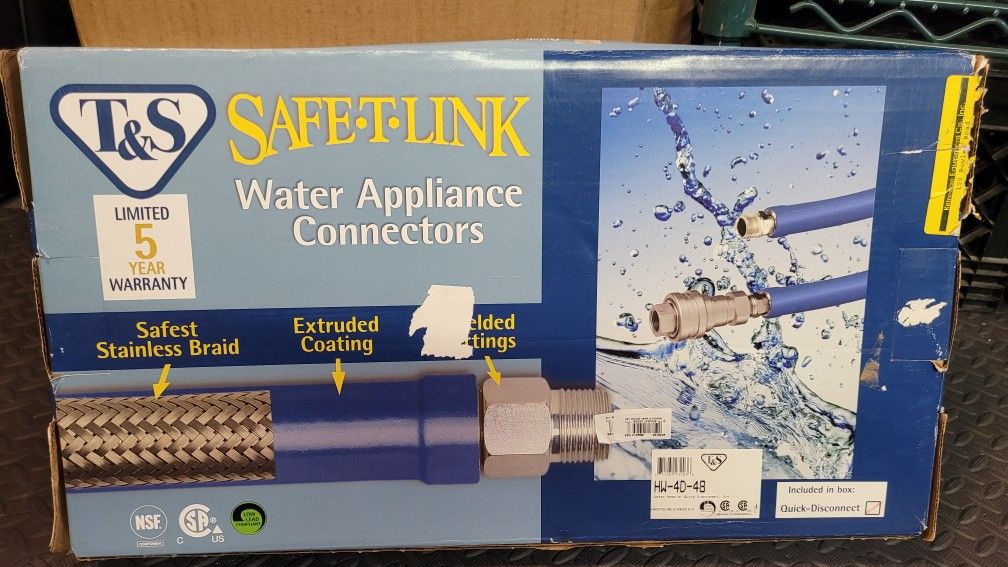 I have 2 new in box commercial water line connection kits with quick disconnects. Commonly used for steamers, combi ovens skilkets, kettles or anything using a water line. These allow for quick removal of water lines for servicing and equipment that is transported. Stainless connections and hardware. The hose is flexible braided stainless steel covered in a blue rubber coating. Both are 3/4" id. And 48" long. Asking $40 for both or $25 each o.b.o Thanks for looking any questions just.