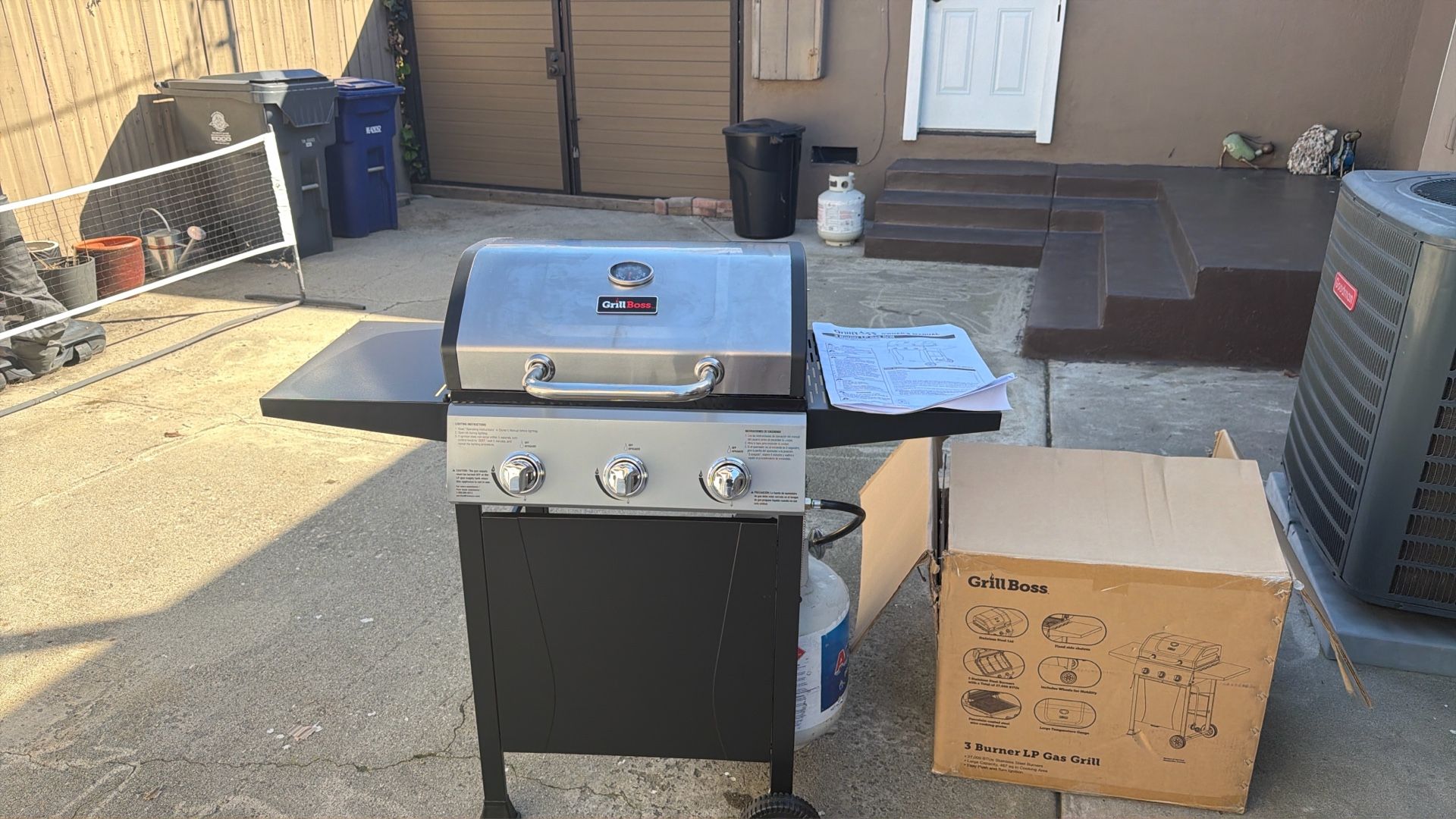 Brand new out of the box from Lowe’s Grill Boss 3 burner grill. Propane tank NOT included.