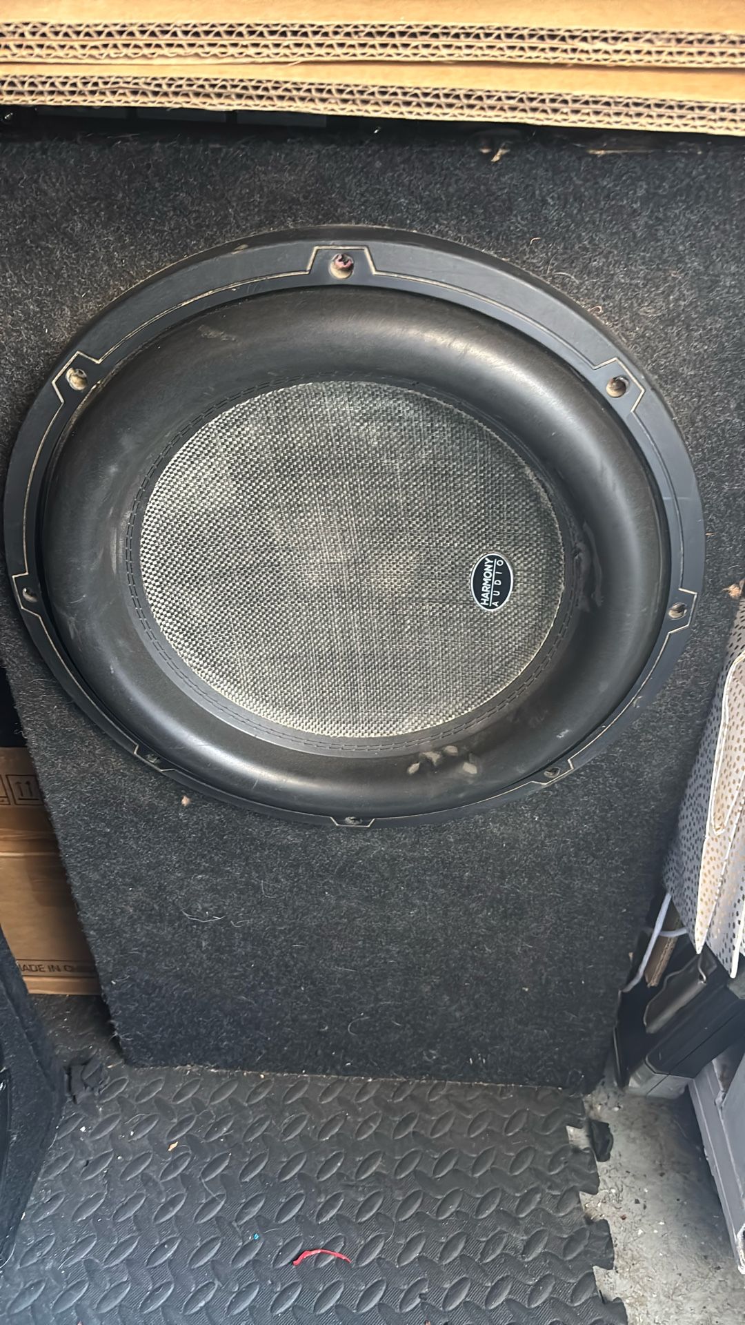 Harmony audio 15 inch subwoofer with box 3200 W dual Voice coil competition subwoofer paid like $500 for it. It’s yours for $250. This thing hits HARD. You’re welcome to come test it out. Make sure you like it.