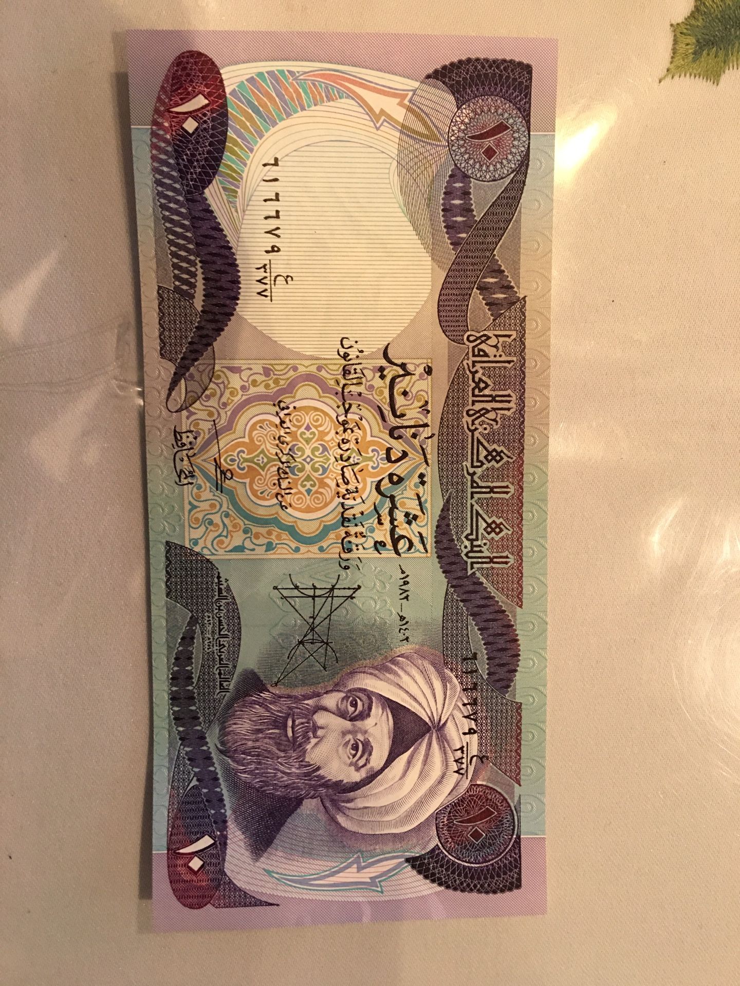 Iraq 10 Dinar Picture of Arab scientist; Al Hassan Bin Al Haithem Date : 1982 Condition: mint Quality:117 Price: $$5.00 per one Fixed price Be the first