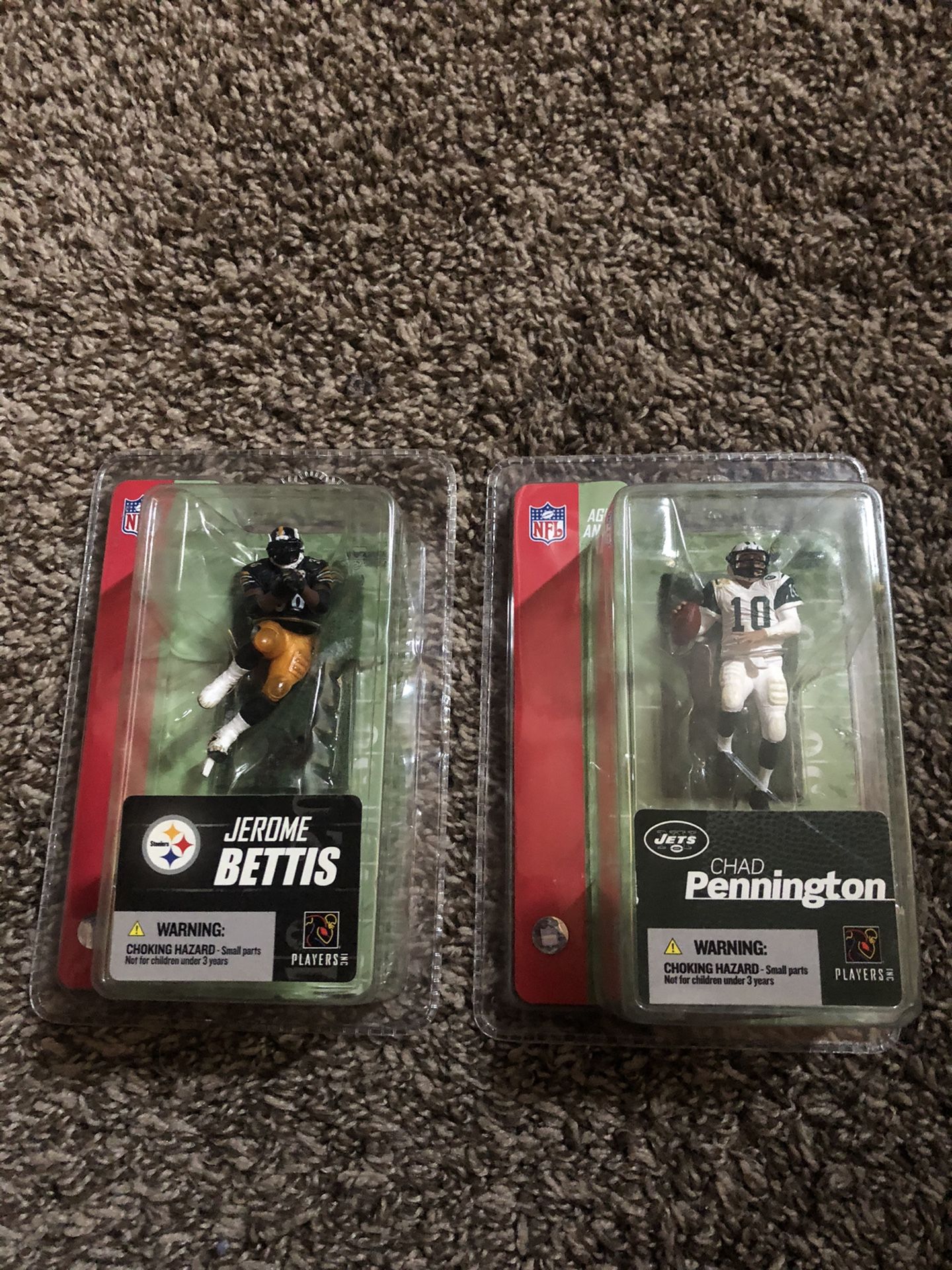 These are 3 inch mcfarlane figures I don’t have a need for them there brand new still in there packaging - JEROME BETTIS STEELERS - CHAD PENNINGTON JETS $6 each or $12 for both