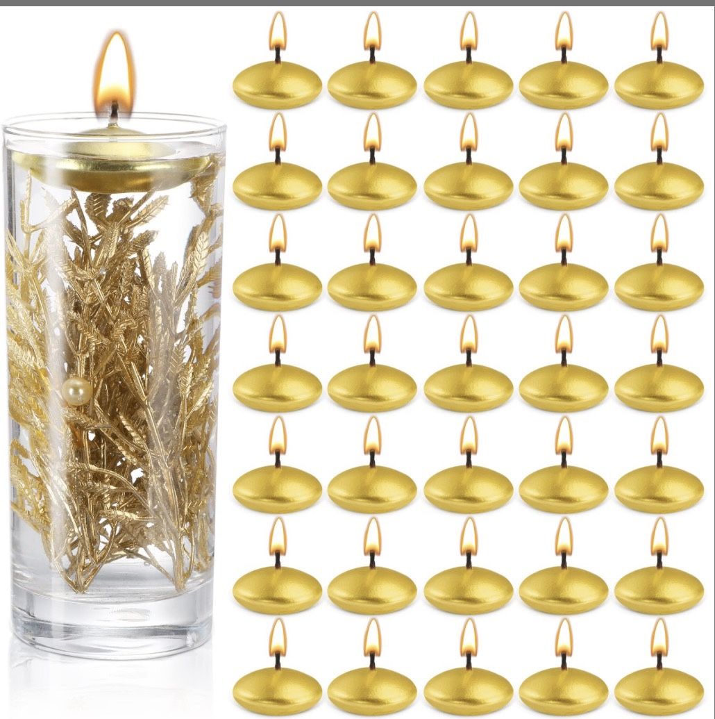 Nuanchu 40 Pcs Gold Floating Candles Unscented For Centerpieces Small Round Tea Lights Candles For Wedding Party Pool Spa Bathtub Dinner Table Decor INV: 802110 (MR)