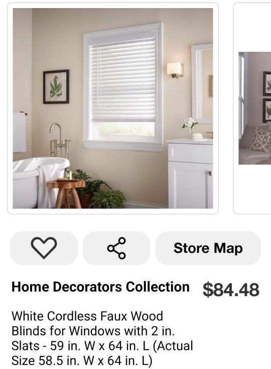 White Cordless Faux Wood Blinds for Windows with 2 in. Slats - 59 in. W x 64 in. L (Actual Size 58.5 in. W x 64 in. L)