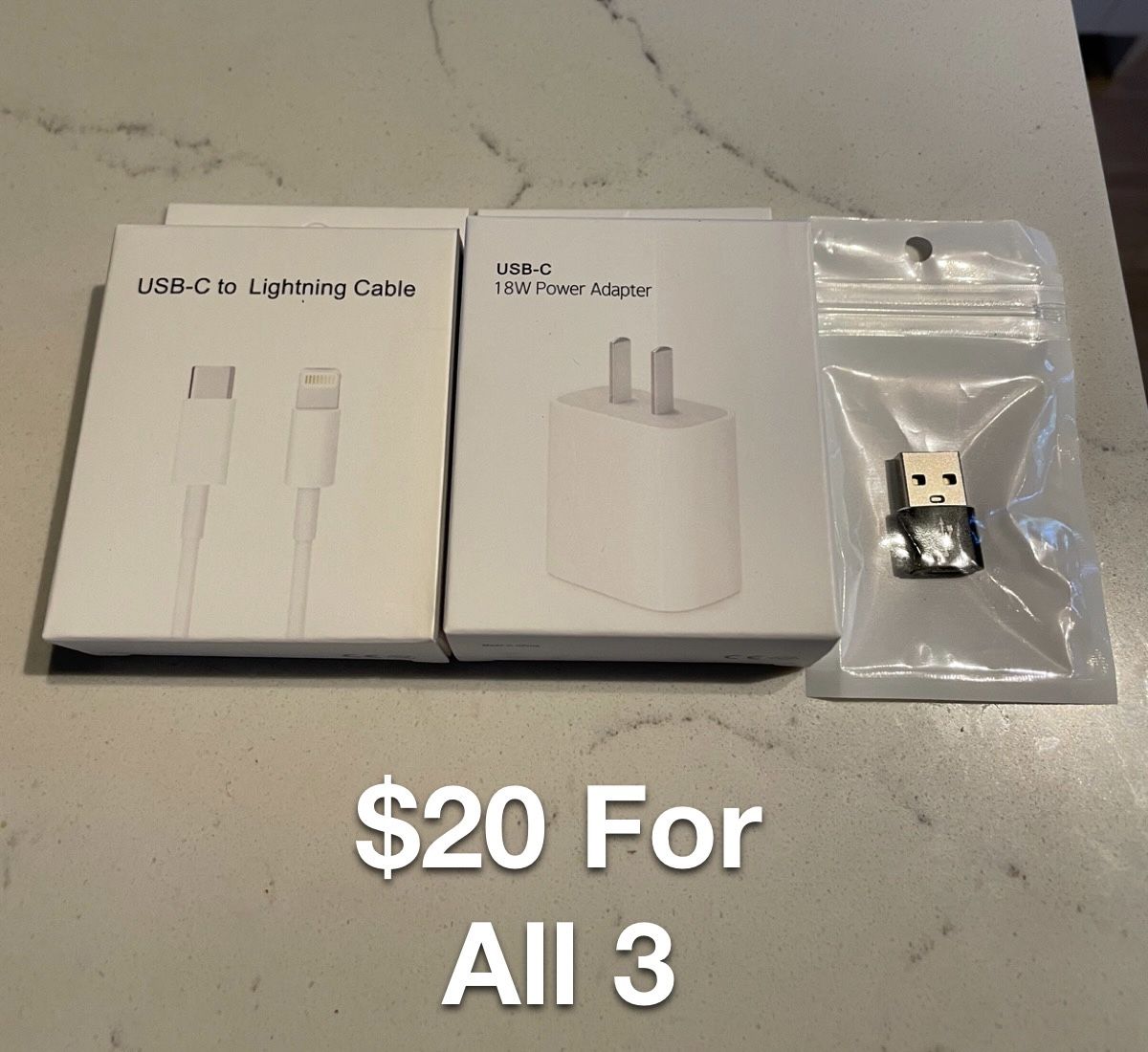 This is a bundle for iPhone 7-13 model iPhones. included- 1-Lightning cable Charger cord (white) 1-USB-C power adapter (white) 1- Adapter from usb to USB-C (black) most commonly used to convert car chargers laptops etc. Only 6 bundles left Price is FIRM