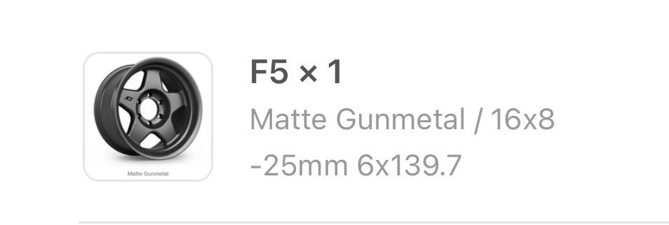 4 Used F5 Matte Gun Metal 16x8 -25mm 6x139.7 1 Brand New in the Box 5 wheels total (doesn’t include tires Clean set. $1150 firm