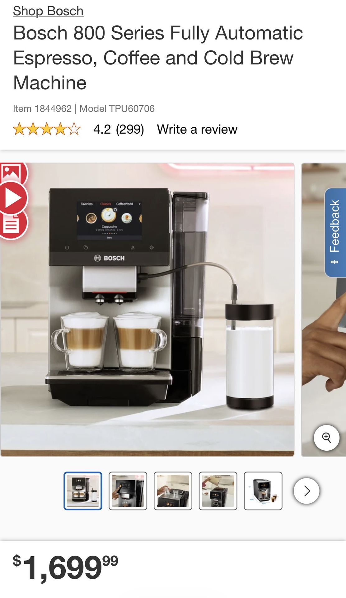 Bosch 800 Series Fully Automatic Espresso, Coffee and Cold Brew Machine Item 1844962 | Model TPU60706