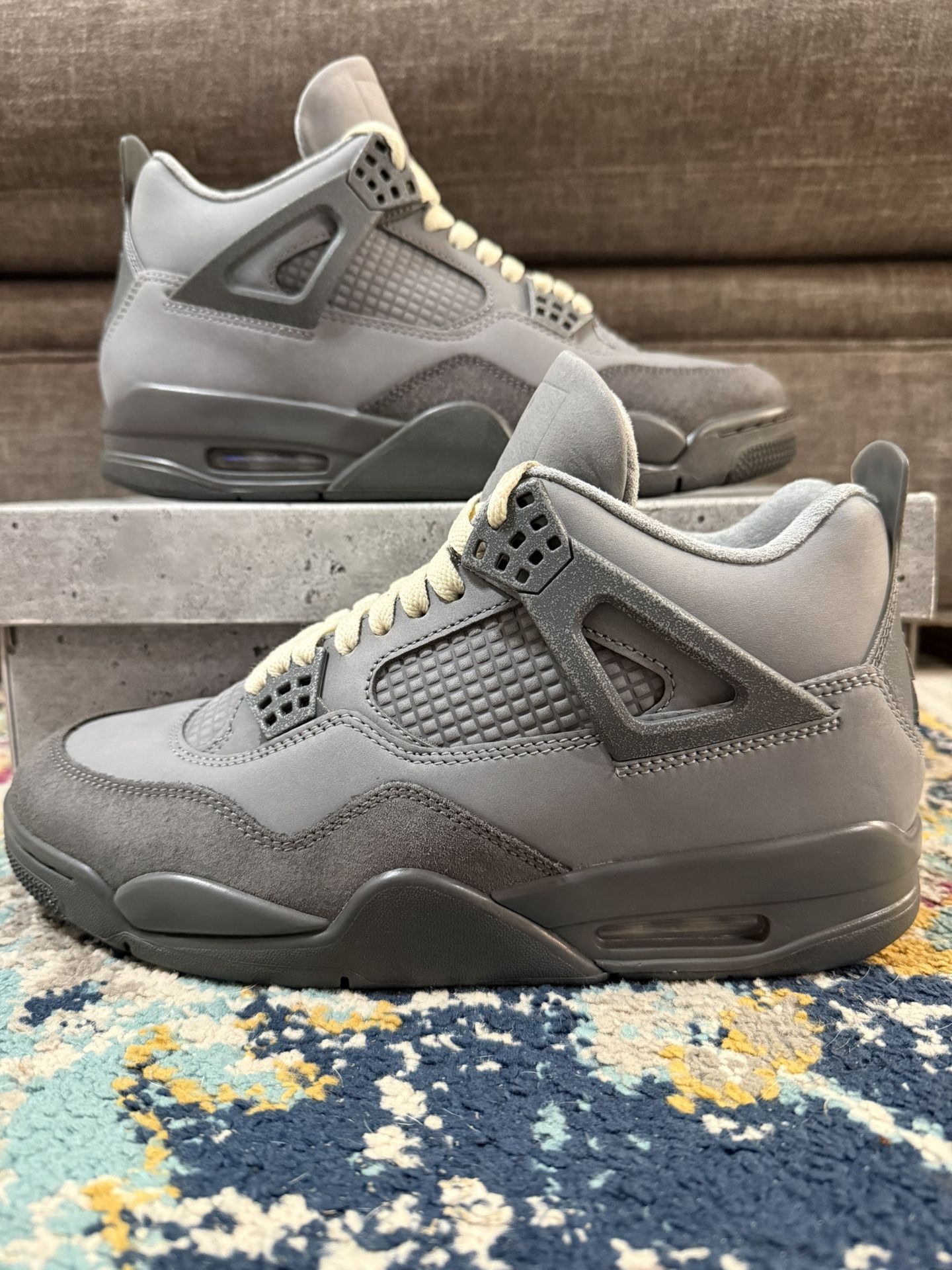 Size 8.5 - Air Jordan 4 Retro SE “Wet Cement” PADS. Pass as dead stock and appears unworn. Preowned in like new condition with original box. Grey laces not included. Size 8.5; authentic. Pick up in Walker area or shipping available. No delivery. No trades.