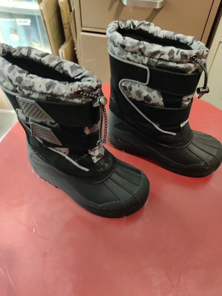 Boys size 11 all weather winter boots new condition Color- black / gray Ultra light with draw string bungee cords for extra protection. Good brand .....Good boot for that little one. Priced at $10