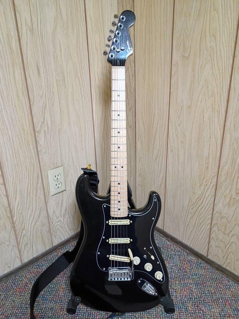 Fender Squier Contemporary Stratocaster Strat Guitar SSS Humbuckers in Black Metallic w Locking Tuners, Contoured Heel, Gilmour Neck-On Switch & MORE!