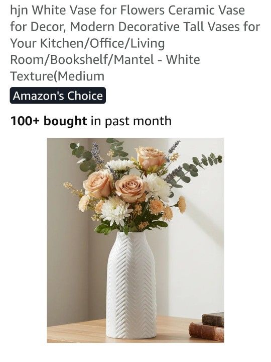 hjn White Vase for Flowers Ceramic Vase for Decor, Modern Decorative Tall Vases for Your Kitchen/Office/Living Room/Bookshelf/Mantel - White Texture(Medium