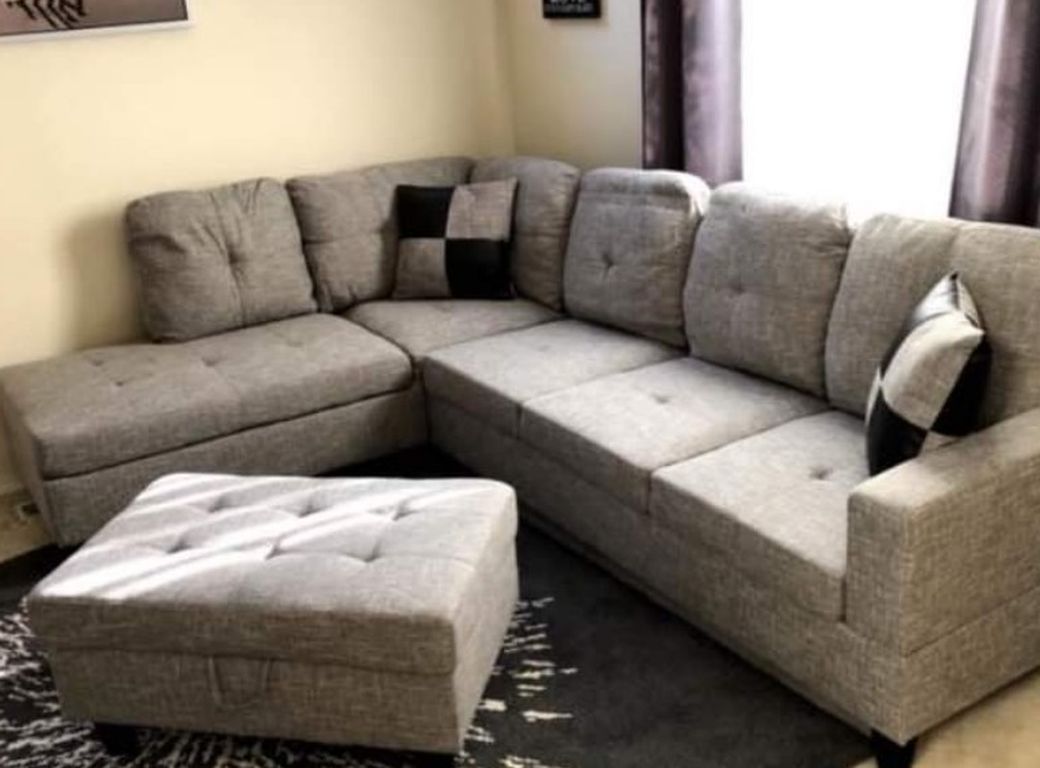 New Sectional with Storage Ottoman at only $620 ( NEW IN BOX. ) " FREE LOCAL DELIVERY " Overall dimensions 103x74x35"H Sofa. 71 1/2 x 32 x 35" H Chaise 74 1/2 x 32 x 35" H Ottoman 37 x 24 1/2 x 16 1/2" H