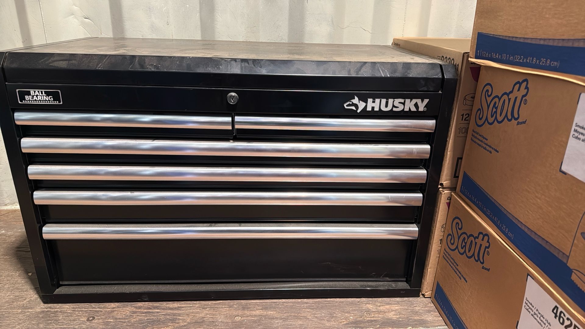 7 drawer husky tool box with ball bearing sliders. New never use. Cheap at $99.00