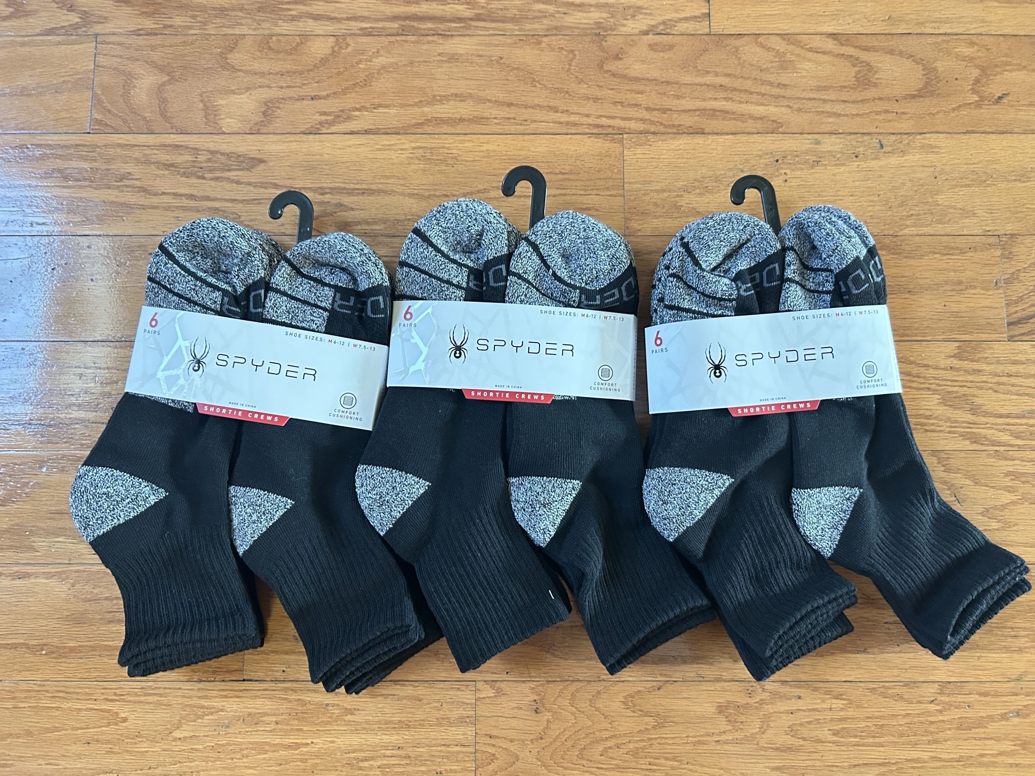 NWT Spyder men’s comfort cushioning shortie crew socks 18 pairs