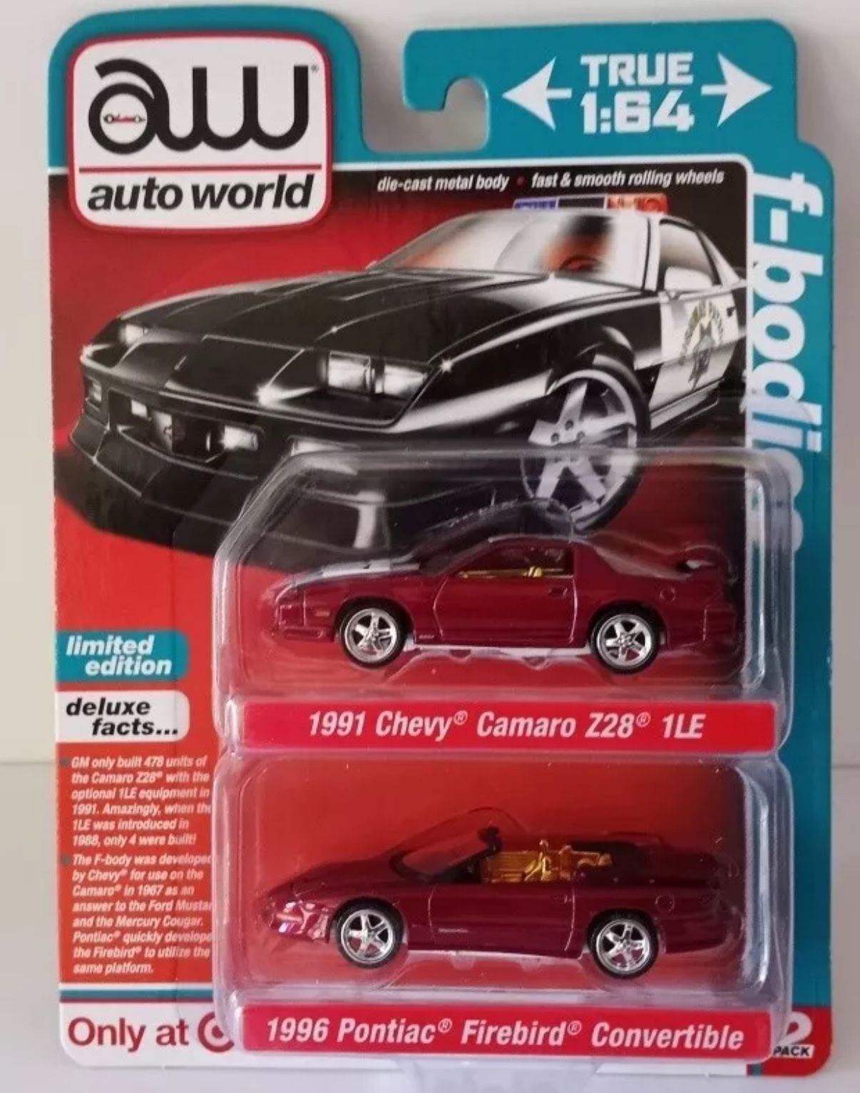 Auto world 1:64 Ultra Red Chase 2 Pack F-Bodies Camaro and Firebird