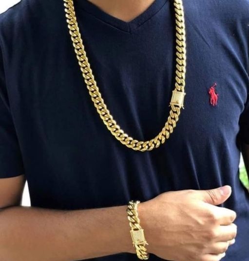 Diamond Lock Cuban Link Set 14K Gold Plated Doesn't Loses Color