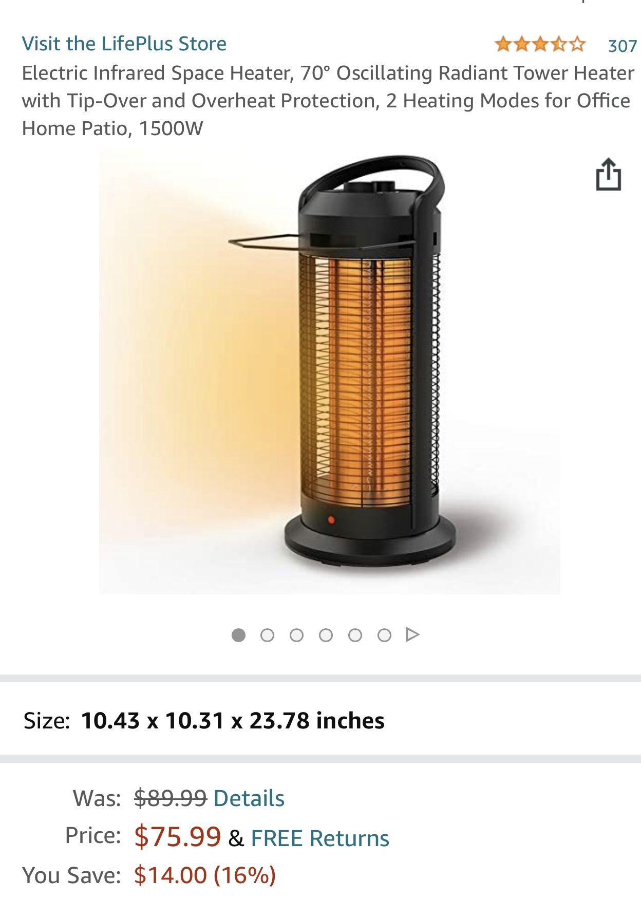 Electric Infrared Space Heater, 70° Oscillating Radiant Tower Heater with Tip-Over and Overheat Protection, 2 Heating Modes for Office Home Patio, 1500W