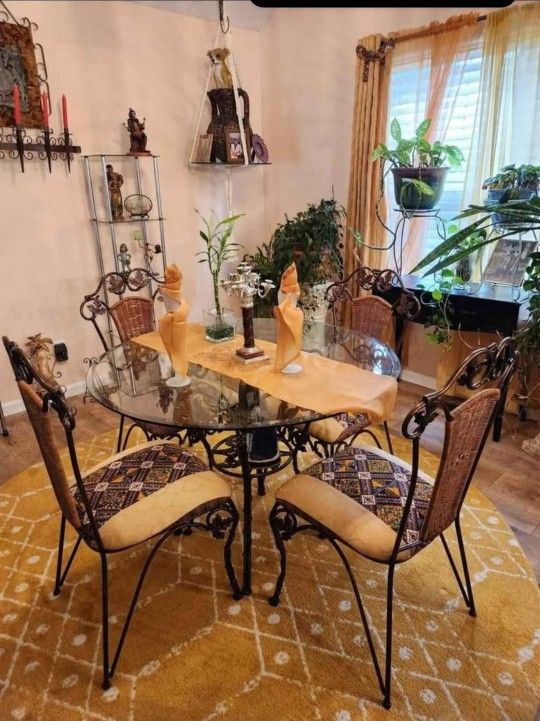 Full Dining Room - Cast Iron Table, Chairs, Custom Upholstery, Rug, etc...