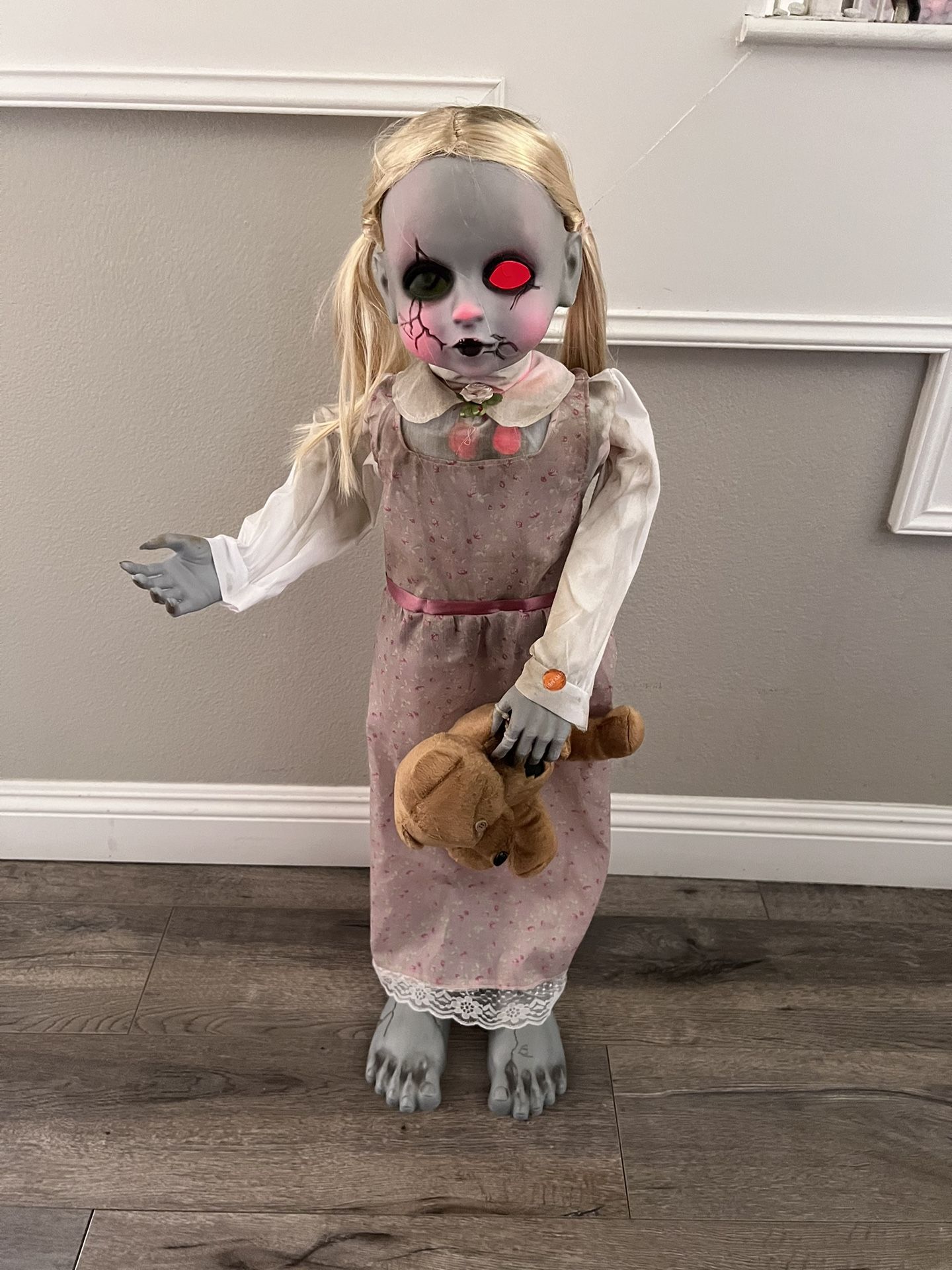 Halloween Animatronic Scary LED Creepy Haunted Doll Girl Teddy Bear 3ft Working