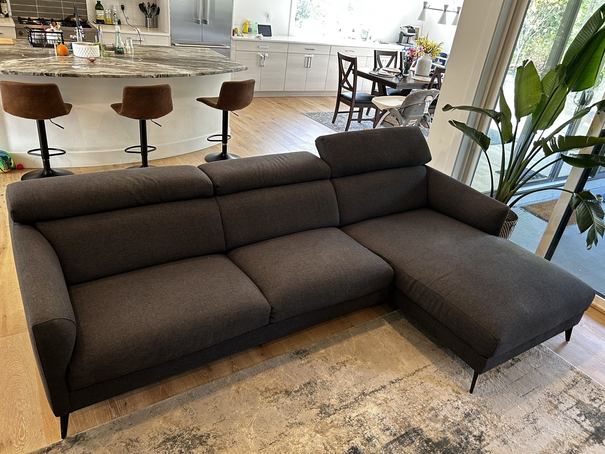 Selling a Kasala dark blue fabric sectional sofa with right-hand chaise in gently used condition. This high-quality sectional combines comfort and modern design with Kasala’s signature craftsmanship. The fabric is soft, durable, and clean, with no stains, tears, or fading. Brand: Kasala (Seattle-based modern furniture store) Configuration: Sectional with chaise on the right side (facing the sofa) Color: Deep navy blue Dimensions: Sofa - 72" x 41" x 38" Chaise - 39" x 67" x 38" Condition: Gently used – excellent overall shape Material: Premium woven fabric, soft yet durable Environment: Smoke-free, pet-free home Why you’ll love it: A sleek, comfortable sofa perfect for a living room or lounge area. Modern lines and quality materials — built to last and easy to pair with any décor.