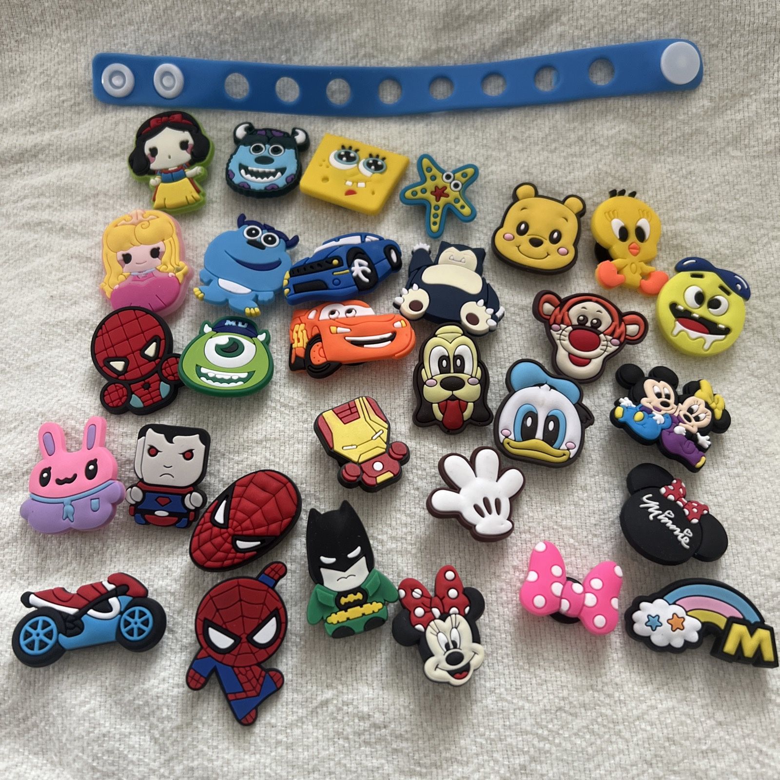 Shoe Bracelet Charms for Croc Clog Shoes Disney Spider-Man Sponge Bob & More LOT only opened pack to sort out.