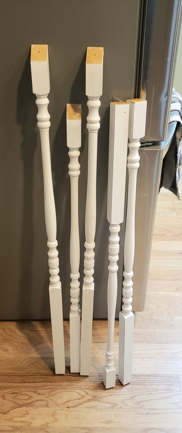 We have 10 white spindles that have an angle on one end from being removed from a staircase. $1 each.