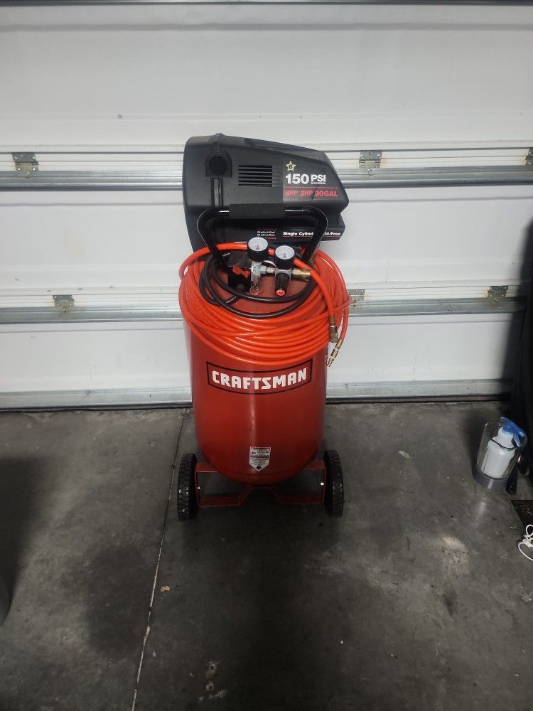 Good working condition Air compressor and hose Good working condition Feel free to test it before buying