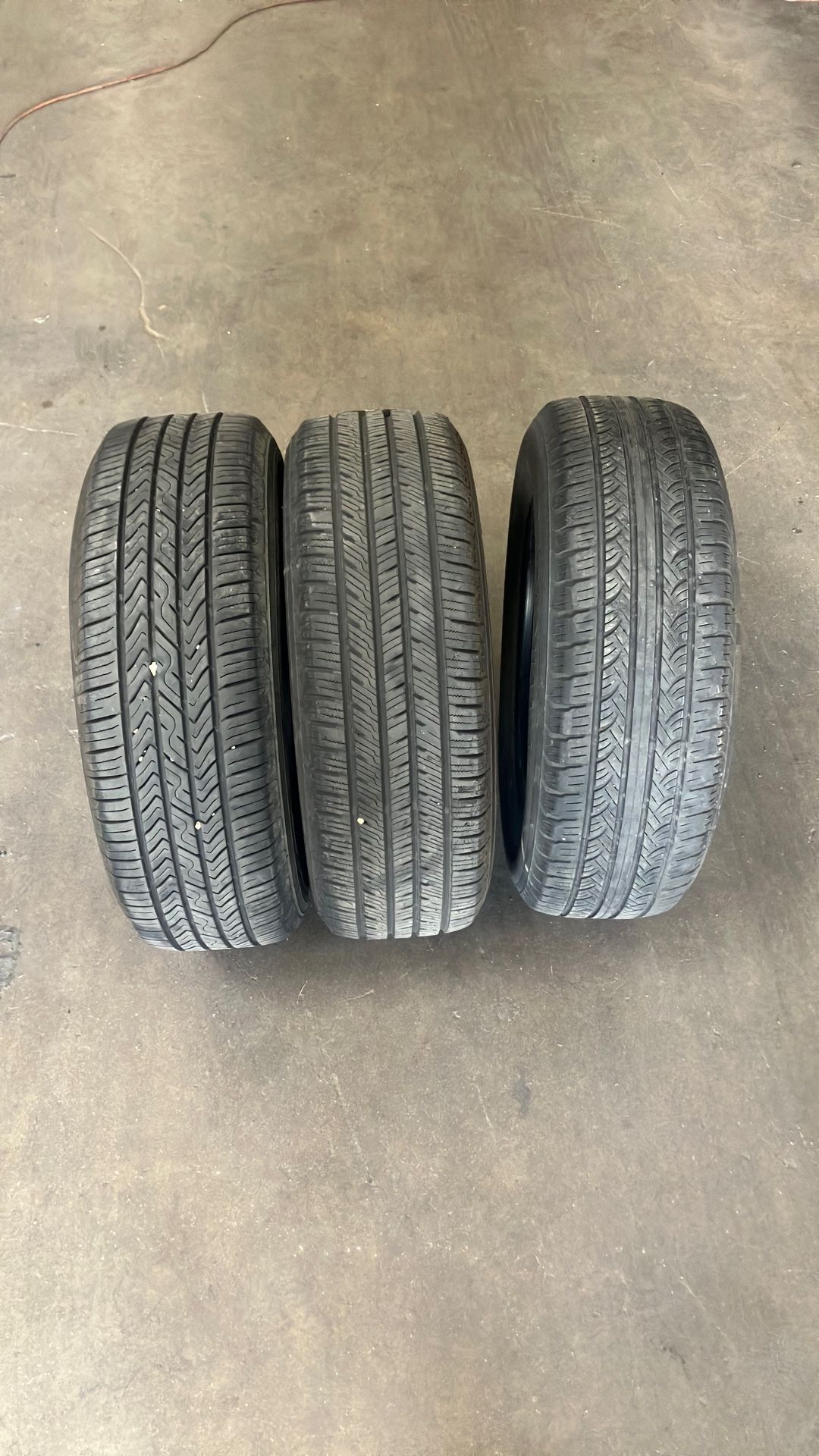 3 used tires. They all have good treads left. However one of the tires has a flat spot. 225/65/17 225/65/R17