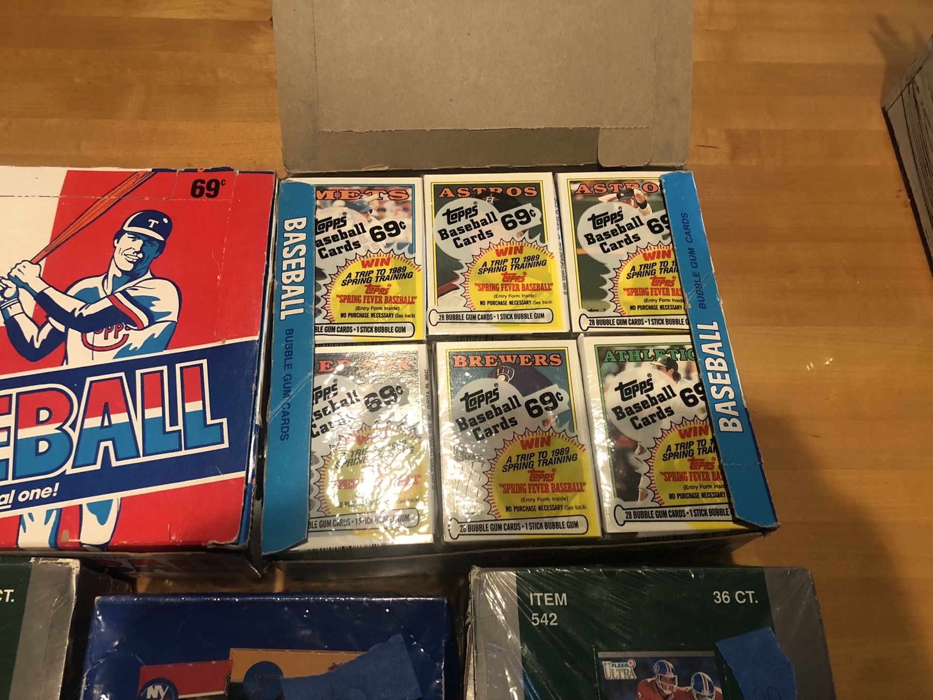 Baseball Football Hockey cards. Some in factory sealed boxes. All packs unopened. Must pick up