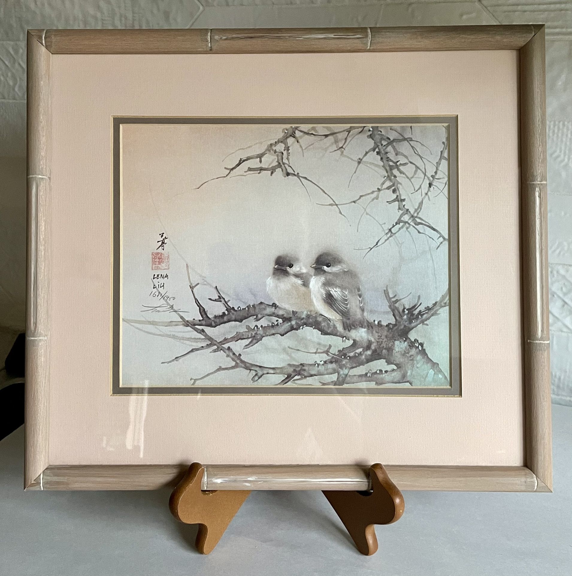 Custom Framed Lena Liu Signed And Numbered Birds On Branch Print