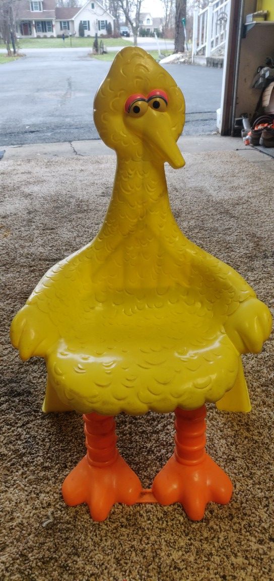1979 Seasame Street Big Bird chair Child’s Size Character Chair 70s Condition: good overall no cracks, good color, some paint loss on eyes See photos for details please zoom in