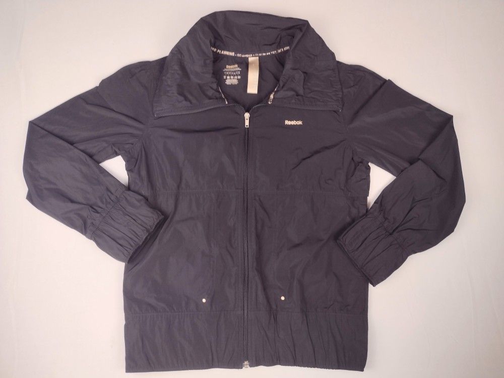 Reebok Women's Windbreaker Lightweight Black Jacket Full Zip Pullover Medium