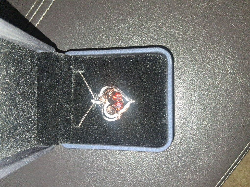 Rose Gold Roses customized in Silver diamond heart with heart cut Red diamonds in the middle of the heart. With I Love You & Always with You, description righting on it. Brand new never used. My wife thank it's to much for her.